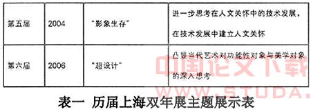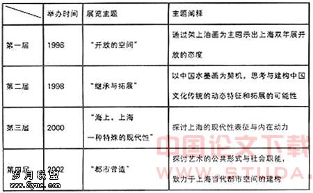 上海双年展开办至今,历届的主题都是以当代都市文化建设为本位,围绕现代都市生活的新理念而展开的,具体见表一