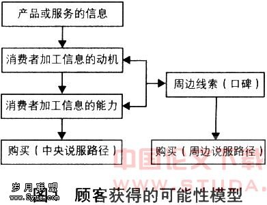 当然,这也不是企业获得顾客的唯一途径,当消费者对信息没有加工的动机或能力时,老顾客就会起到口碑作用,影响消费者继续向下前进直到购买行为的产生。在另一种情况下,当消费者没有动机或能力时也可能会主动找到老顾客,向他们寻求更多的信息以帮助自己加工信息。所以在这个过程中企业的老顾客成为影响企业新顾客的一个重要方面。对此,企业就应该加强与老顾客的关系,保持老顾客的忠诚度,为企业建立一个良好的口碑环境。