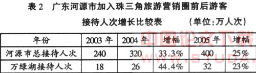 从表2可见,河源市在2003年加入珠三角营销圈后,游客人次实现了较大增长。