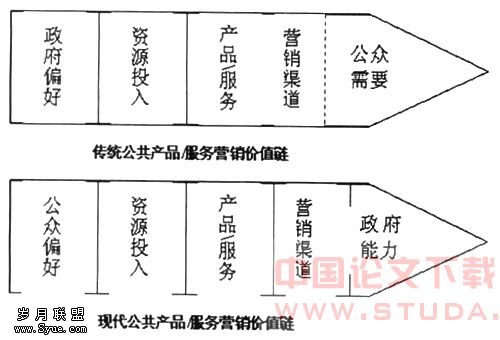 (二) 公共服务又不完全等同于私人产品,政府在提供公共服务过程中还要根据不同的目标模式选择相应的营销策略