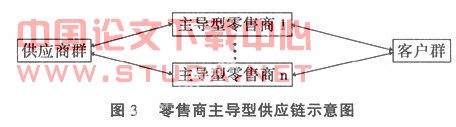 5.重建供应链利益分配机制。就零售商主导型供应链系统而言,核心企业零售商将处在完全主导角色,在供应链运作上零售商具备很强的优势,这可从零售商主导型供应链分析得之,如图3所示: