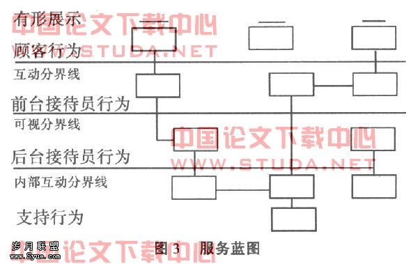2.服务流程设计。企业对顾客进行期望管理的最终目的是希望提高顾客满意度,而提高顾客满意度的方法之一就是将顾客期望控制在一个较低的水平,进行有效的服务流程设计将可以达到这个效果。在进行服务流程设计时,服务蓝图最为有效。如图3所示,服务蓝图由三线四区(互动分界线、可视分界线、内部互动分界线;顾客行为区、前台员工行为区、后台员工行为区、支持行为区)构成,其中极为关键的是可视分界线,它把顾客能看到的服务行为与看不到的分开,由于顾客无法知道在可视分界线后面发生了什么,因此,在可视分界线之前的服务活动对顾客有至关重要的影响。当顾客看到可视分界线之前的服务提供者都很忙碌、很尽力地工作,服务过程很专业化、很复杂时,他原来对等待时间、服务质量等的容忍区域将会扩大,期望也将相应降低;而当顾客看到可视分界线之前的服务提供者很清闲、服务过程很简单、技术含量很低时,他对诸如等待时间、服务质量等的容忍区域将会缩小,期望也将相应提高。企业通过服务流程设计,将可以有效控制顾客期望,通过合理划定可视分界线,将能降低顾客期望的部分尽量展示在顾客面前,而将可能提高顾客期望的部分尽量设计在可视分界线之后,以控制顾客的期望。如饭店设置开放式厨房,使顾客能看到精美而复杂菜肴的制作过程,这样,顾客将不会期望在很短的时间内就能享用到精美的菜肴。银行将后台人员设置在可视分界线之后,使顾客只看到紧张忙碌的前台工作人员,从而相应降低了顾客对等待时间的期望,都是为了达到这样的效果。