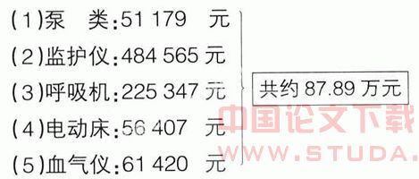 由以上数据得出,ICU五种设备2007年总净收入为: