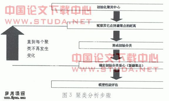 如图2所示,服务挖掘中客户价值的实现是通过利用企业的有限资源,通过一系列的流程操作,在品质、渠道、服务、品牌、环境上获得客户的满意。而数据挖掘可以利用聚类分析、关联规则、决策树、异常检测、神经等算法,围绕客户细分,客户保持,交叉营销,客户流失预警等方面为客户提供差异化的主动服务提供技术,本文正是基于这种观点提出了基于客户价值分析的服务挖掘模型如图,并以客户细分为例重点进行模型的实证分析。