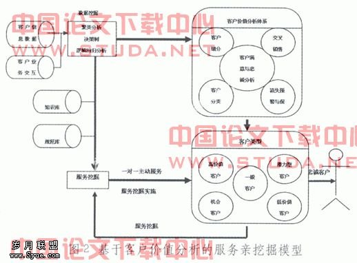 并非所有的服务都值得挖掘,也并非所有的服务都可以挖掘。服务挖掘可以应用于如下领域,汽车4S店、大型机械设备的维护、信用卡业务管理、手机实名制后的通信领域服务、保险行业、医疗卫生行业、商务等,归纳起来,这些应用领域有一个共同特征是服务商必须掌握大量的客户信息和业务数据,在企业资源有限的情况下,服务商不可能为所有客户提供一致的服务,因此有必要进行客户价值分析,为服务挖掘选择对象。在客户价值分析的基础上结合服务挖掘提供更细致的差异化的“主动”服务。