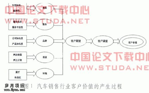 图1是以汽车销售行业为例表示如何将公司所有资源转化为自己的核心能力,如品质,服务,品牌,渠道,环境等来创造客户价值的流程。客户的需求随时都会发生变化,竞争对手也会有各种不同的对策,企业的资源、能力也在不断调整,所以这个过程应该是车轮式动态的。