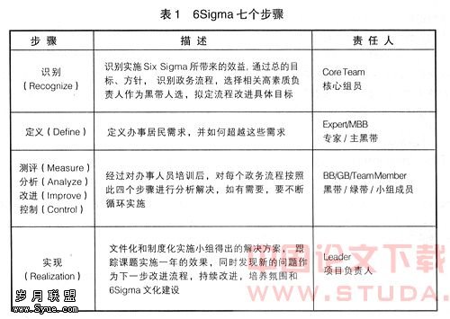 关键词:六西格玛管理 “一门式”政务建设 流程再造