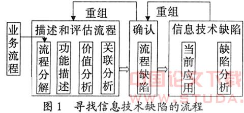 本质上讲,分析企业的基本特征和业务流程重组的关键核心就是寻找信息技术缺陷的过程。企业的业务流程重组就是在寻找缺陷和消除缺陷的交替过程中,得到不断优化的,因此,业务流程重组也是一个动态的过程。