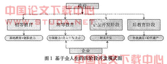 现阶段,几乎所有的人力资源开发模式都是基于企业来进行研究的,也就是企业的人力资源管理的范畴,缺乏系统性的面向人力资源的全过程的开发模式。正是因为如此,我国的人力资源开发才会落后于其他国家,并总是不能与社会的需求同步。人力资源开发不仅是企业的责任,乃是整个社会的责任,应该是政府、高校、企业乃至社会的共同配合、作用的结果。同时,人力资源开发应是有始有终,并环环相扣的,不是在人生的某个阶段集中开发就可以提高一个人的整体素质的。