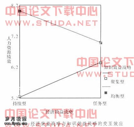 当资源型城市的人力资源绩效管理采用聚集型知识效益战略时,应辅以任务型经济效益战略;当采用均衡型知识效益战略时,应辅以持续型经济效益战略。但是无论资源型城市采用何种经济效益战略,选择均衡型知识效益战略都能获得较高的人力资源管理绩效,即均衡型知识效益战略具有较强主效应。