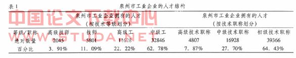 泉州市工业企业人才状况与经济发展分析