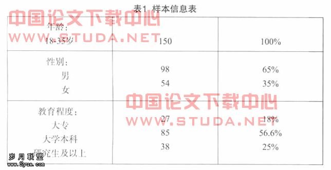 保证研究结果的普遍适用性,我们对成都市的多所大学(四川大学、西南大学、四川财经大学等)采用了分层随机抽样的方式。采用问卷调查法,发放问卷约160份。回收160份,有效问卷150份,有效问卷占93.7%,样本状况如表1: