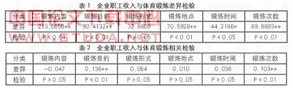 统计结果证明,企业职工收入与体育锻炼的内容、目的、地点、时间、次数有非常显著的差异,与锻炼目的、锻炼次数非常相关。体育消费是为了满足人们特定的需要而产生的,它是以社会物质生活条件来决定的,社会物质生活条件越优越,体育消费的投入的比重就越大,反之就越小。除此之外,人们的体育习惯、生活节奏、余暇时间、体育观念、社会环境等都与体育消费有关。应该说,体育消费行为既是生活水平的缩影,又是人们体育健身观的折射。