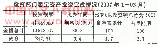 教育投资占全国总投资1.702%,现阶段西部地区教育投入不足,基础教育不够完善,同时高等教育出现结构失衡现象等等。?