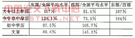 西部地区文盲半文盲比全国和东部高出26%、11.45%大专以上比全国和东部地区低18.6%、57%。?