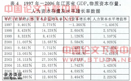 根据表4计算的各年GDP、物质资本存量、人力资本存量、人力资本水平的平均增长率分别为12.776%,13.557%,2.087%,1.679%?