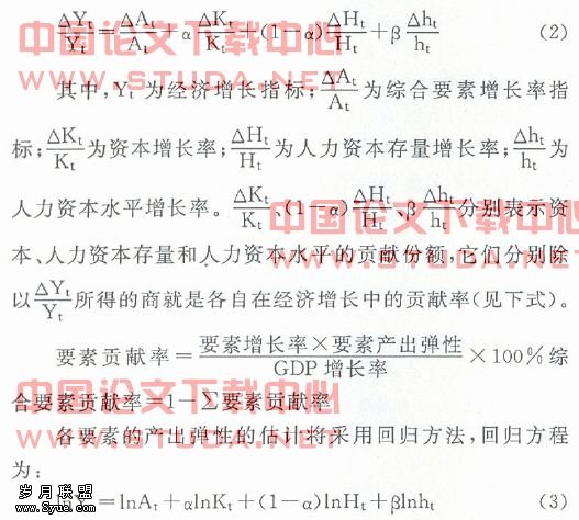 为准确判断人力资本在经济增长中的贡献和作用,一个重要的途径就是计算人力资本在经济增长中所占的份额,即贡献率。对式(1)变成差分方程可得(2)式:?
