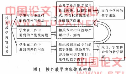学校的教学课题按照专业整合,形成规范化的教学内容模块全校范围内各个专业的校外教学课题形成完整的信息系统,可以让学生根据个人实习情况通过实现自主选择校外教学内容。学生集中的地方可组织教师授课,分散的地方可自行通过网络学习。自主选择校外教学内容可以避免学生认识不到位、不积极或因实习岗位工作内容简单等因素而导致的没有教学需求的情况发生。