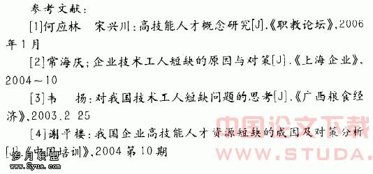 3.技能人才资源不足。高等职业教育名不副实,没有成为培养技能人才的主力军,目前许多高等职业教育等同于以前的大专教育,没有摆正自己的位置,而中等职业教育对培养高技能人才还在摸索和尝试阶段,所以使得技能人才的培养实质上处于缺位状态。因此大力高等职业教育,强化高技能人才的学校初期培养功能是职业教育改革的当务之急。在这方面国家应加大对高职教育的投入,高职学校也应改变教育观念,及时调整专业设置,准确定位技能培养目标。研究并确定技能型人才培养模式,为企业培养真正需要的技能型人才。