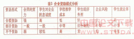 因此,如果仅仅以“能 否提高学生就业率”来衡量,则大大降低了“订单式”人才培养模式对于职业教育改革的意义,应该从优化教育资源的角度予以高度肯定。至于学校究竟以何种形式与企业合作,以何种方式适应企业的需求,各院校可以根据各自的实际情况进行组合,不必局限在是否能够给学校注入资金、给学生予以资助、负责学生就业这些具体问题上,而是从如何更好地利用企业资源出发,及时传递企业人才需求的最新动态,提高学生对企业的认识,更好地学习理论知识,掌握职业技能,为今后就业打下良好的基础。