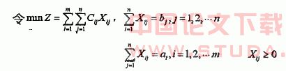 例如:某跨国汽车制造公司在全球有m个生产基地Ai,i=1,2,3…n供应量是ai,i=1,2…m,有n个销地Bj,从Ai到Bj运输单位物资的运价(美元)为Cij,这些数据可归结为产销平衡。若Xij表示从Ai到Bj的运输量,那么在产销平衡条件下要求运费最小的方案有最优解?