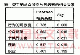 二、对员工从众倾向影响因素的的分析