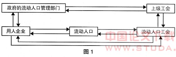 当流动人口与企业之间产生矛盾无法得到解决或者流动人口受到不公正待遇的时候,转向流动人口工会寻求援助,流动人口工会与企业取得联系,进行协商解决问题,并将结果反馈给流动人口。流动人口工会收集流动人口的意见并从平时工作中,再通过上级工会向政府的流动人口管理部门建议制定一些保护流动人口合法权益的政策法规;政府收集用人企业的意见,最终制定出双方都较为满意的政策法规。