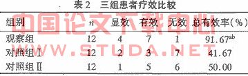 注:与对照组ⅰ比较,a:χ2=6.75,p<0.01;与对照组ⅱ比较,b:χ2=5.04,p<0.05