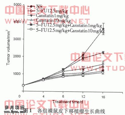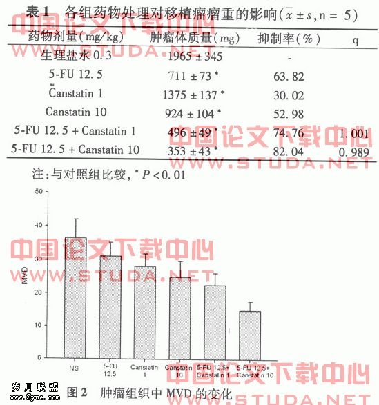 重组Canstatin蛋白联合氟尿嘧啶治疗裸鼠结肠癌移植瘤的实验研究