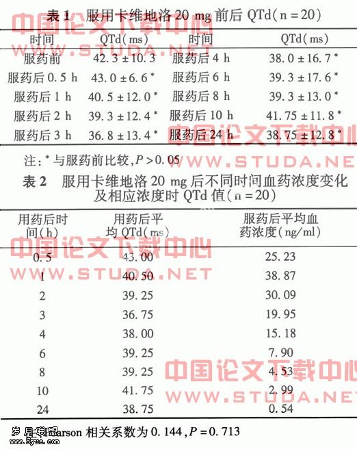 【关键词】卡维地洛;Q-T间期离散度(QTd);血药浓度;健康男性青年