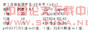 目前关于在SLE中,细胞因子与该病之间的关系的相关报道较少。本研究采用ELISA技术检测SLE患者血清中IL-18水平,研究它与SLE的关系,以便我们进一步了解SLE的发病机理。