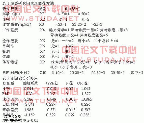 日照时间、劳动强度和豆质品。很明显,进行锻炼没有入选。骨关节发病是多因素综合作用的结果,需要对上述几个相关因素(假设为相关)进行进一步筛选或剔除。 2.2多因素逐步回归分析