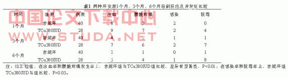综上所述,吉妮环与TCu380IUD均具有同样高效的避孕效果,但吉妮环更具有机械性压迫小,不易移位,特别适用于子宫大,宫口松弛易脱落者,且对出血及腰酸疼痛等副反应均有明显改善,值得临床进一步推广和应用。