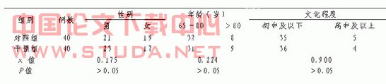 1.1研究对象益阳市中心2006-2007年老年开胸开腹手术患者(≥65岁)中随机抽取患者80例,其中男44例,女36例,将研究对象随机分为干预组、对照组各40例。入选老年人均无高血压、冠心病、糖尿病等其他病变。两组患者一般资料在性别、年龄、文化程度、病种、病情及手术麻醉类型等方面均差异无统计学意义(P>0.05),具有可比性。见表1。