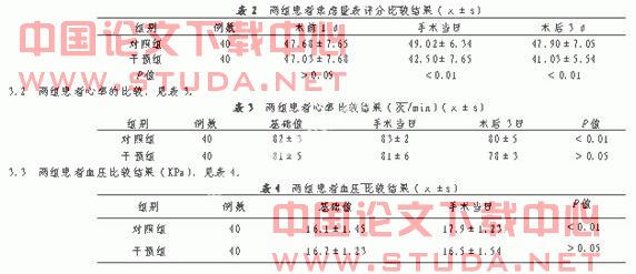 1.2方法对照组采用传统护理方法,干预组采用围术期心理护理方法:分别观察两组患者术前1 d,手术当天和术后3 d血压、心率变化,并通过SAS焦虑自评量表[3]测量焦虑相关因素及焦虑值对患者焦虑状况进行评价,将数据输入机采用SPSSV10.0软件包处理分析。