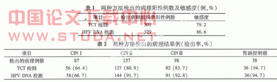 由此可见,联合应用多种方法进行宫颈病变的筛查,可有效准确地筛查出病员,为宫颈癌的防治起到积极作用。联合HPV DNA的检测可以增加宫颈病变的阳性检出率,从而减少漏诊,可有效准确地筛查出病员,为宫颈癌的防治起到积极作用。?