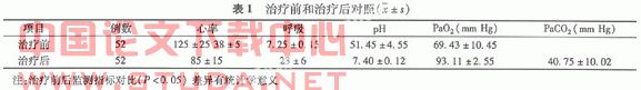 1.1 病例选择 选取2005年8月至2008年18月52例重症哮喘患者,其中男36例,女16例,年龄23~85岁,平均57.8岁。哮喘病史3~15年,平均8.2年。合并肺心病14例,高血压病7例,冠心病5;所有患者均有端坐呼吸或极度呼吸困难,端坐呼吸,双肺满布哮鸣音,动脉血氧分压(PaO2)<60 mm Hg,动脉血二氧化碳分压(PaCO2)>45 mm Hg,符合2002年11月修订的《哮喘急性发作时病情严重程度分级标准》的重度哮喘病例[1],排除标准:自主呼吸微弱、血流动力学不稳、低血压、严重心律失常、意识障碍、上呼吸道梗阻、双肺广泛肺大泡或气胸者。?