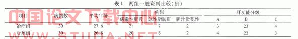1.1 临床资料 选择我院2005年5月至2008年5月具有肝功能损害的围生期妇女60例随机分成两组,两组年龄、病因、肝功能损害程度及用药量比较均无显著差异,具有可比性(见表1)。?