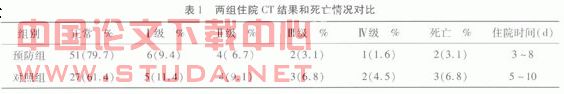 2.2 两组早产儿头颅CT分级、住院结果(表1)