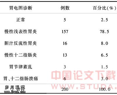 表1 200例小儿上腹痛患儿胃电图检查结果