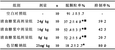 表5 清血糖浆对大鼠颅骨骨膜肥大细胞脱颗粒的影响 (x±s)