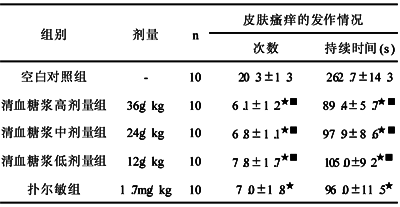 通过上述实验研究表明清血糖浆至少在以下3个方面阻断或干扰了瘙痒的产生:(1)稳定肥大细胞膜作用:通过稳定肥大细胞膜抑制肥大细胞脱颗粒,释放瘙痒介质。(2)抗组胺作用:能够直接拮抗组胺介导的瘙痒。(3)增强红细胞清除循环免疫复合物的功能。