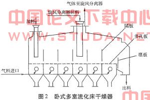 设备是实现各个单元操作的基石。随着时代的进步,科技的发展,操作设备也是在不断更新换代。在设备的发展过程中,经济核算有着不可或缺的作用:蒸发器经历了由循环型到单程型的发展历程,特别是循环型蒸发器的发展历程,首先是列管式蒸发器的出现,它直接使用列管式换热器来实现蒸发操作,但是由于被蒸发的流体处于静止状态,带来的结果是加热时间长、加热不均匀、加热管上易出现结垢现象等,从而导致物料的损失,不利于生产目的的实现;而后发展出中央循环管式蒸发器、外加热式蒸发器和强制循环蒸发器等设备,这一系列的变化使得在蒸发器中被蒸发的液体流动性加强,而直接导致的结果则是加热管上产生的结垢现象减少了,处理高粘度、结晶性、热敏性物料的可能性增加了,操作时间随之下降的同时,蒸发的生产能力获得了提高。再看干燥设备的发展,基于对流干燥原理的设备有水平气流厢式干燥器、穿流气流厢式干燥器、隧道式干燥器、带式干燥器与流化床干燥器等,虽然这些设备当前在同时使用,但从它们的发展情况上看,无一不是带着比前一类设备更好的干燥效果、更高的生产能力而出现的,这样的结果从流化床干燥器自身的变化更易发现:比较单层圆筒形流化床干燥器(如图1所示)与卧式多室流化床干燥器(如图2所示),从图形可分析出这样的不同:单层圆筒形流化床干燥器产品的干燥效果不如后者;单层圆筒形流化床干燥器由于设备体积较大一次性进料较多,易引起沟流与死床等不正常操作。