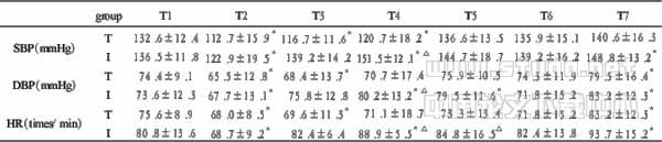 表1 两组患者SBP、DBP、HR的变化 (x±s)