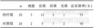 1.1 一般资料 本试验共收集进行期寻常型银屑病完整资料40例,按住院先后随机分为治疗组和对照组,每组各20例。另选择门诊健康体检者20例,作为健康对照组。