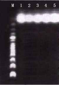 1.2.2 DNA的质量检测 用0.8%琼脂糖凝胶电泳,EB(溴化乙啶)染色,进行DNA质量检测,电泳缓解液为1×TAE,电压为80V,电泳1~2h,然后在紫外凝胶成像系统下观察摄像。