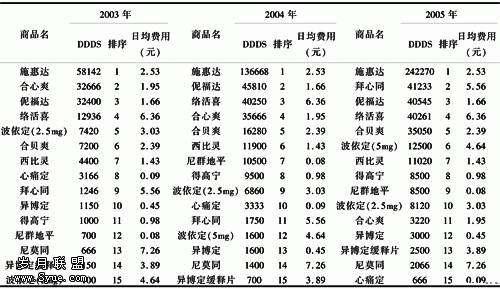 表3 2003~2005年钙拮抗剂DDDS排序及日均费用 (元)