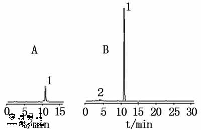2.1 色谱条件 色谱柱:Diamonsil-C18 (4.6mm×200mm, 5μm);流动相:0.01 mol/L三乙胺的水溶液(用磷酸调节pH为2.8)-乙腈(73:27);流速1.0 ml/min;检测波长278nm;柱温30℃;进样量10μl。