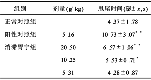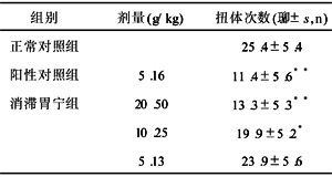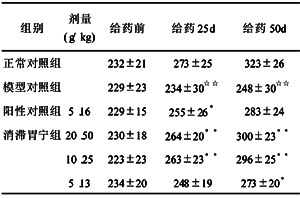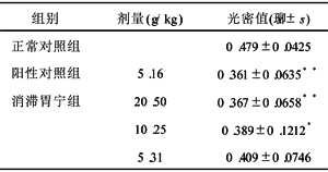 1.2 受试物 消滞胃宁浸膏粉,由甘肃省药品检验所药理室提供,临用前根据需要配制成不同浓度的混悬液;阳性对照药温胃舒颗粒,合肥神鹿双鹤药业生产,批号0404005。