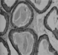 2.2.2 前列腺液的检测[11,12] 用前列腺按摩法采取前列腺液。正常前列腺液为稀簿乳白色液体,镜检:有很多卵磷脂小体,每高倍视野白细胞数在4个以下,偶见精子。前列腺炎时,白细胞或脓细胞每高倍视野4个以上,卵磷脂小体减少,偶可查到滴虫。在显微镜下检查可见以下几种成分:(1)卵磷脂小体:正常前列腺液内卵磷脂小体几乎布满视野,当前列腺发生炎症时,巨噬细胞吞噬大量脂类,故卵磷脂小体减少。因此,卵磷脂小体的多少,在一定程度上反映前列腺炎的轻重。(2)血细胞:正常前列腺液内红细胞极少,往往在炎症时才出现,如按摩过重也引起红细胞数增加;正常前列腺液内白细胞散在,每高倍视野下不超过4个。